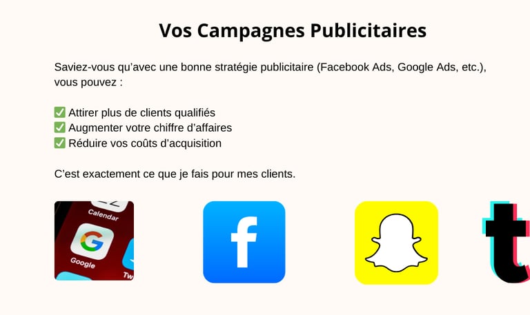 Création et gestion de campagnes publicitaires (Facebook Ads, Google Ads)