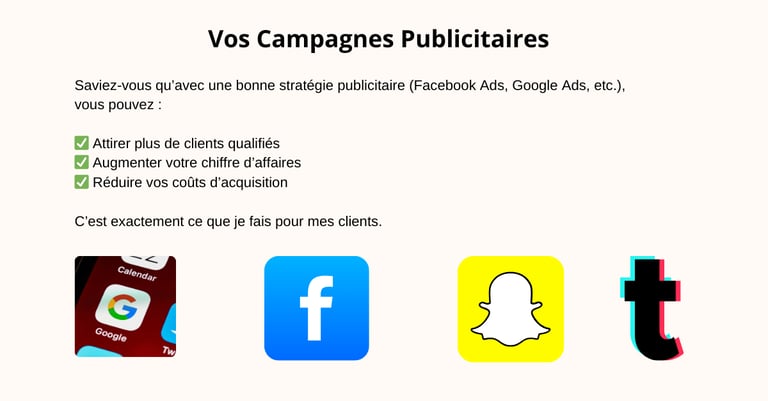 Création et gestion de campagnes publicitaires (Facebook Ads, Google Ads)
