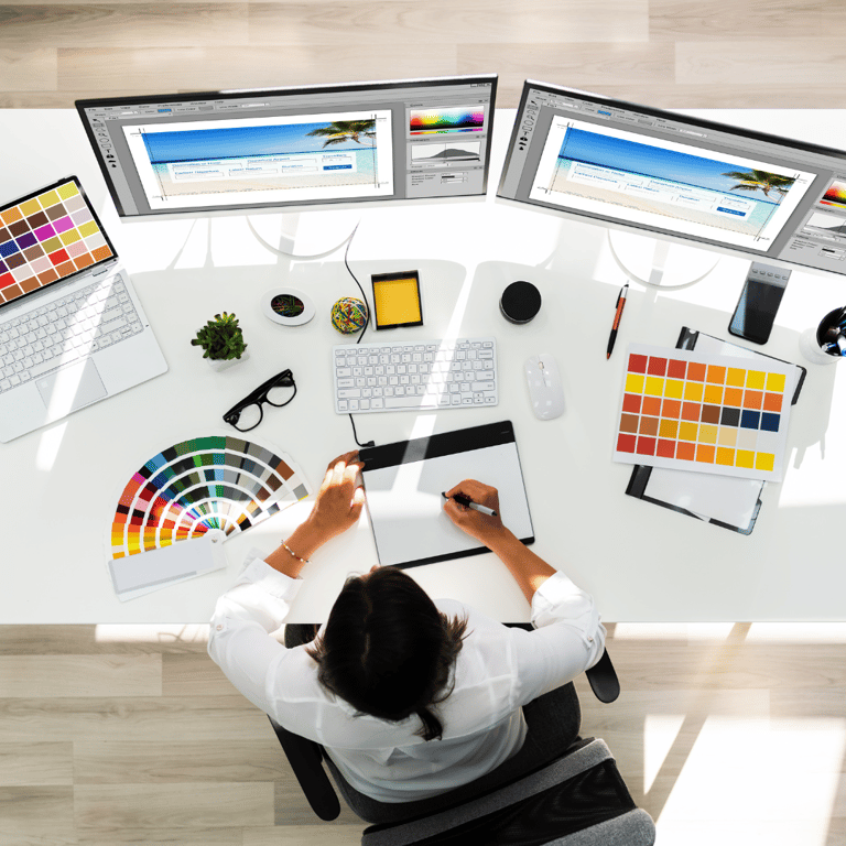 Création de logo, Charte graphique, Supports de communication, Conception de cartes de visite, papeterie, signatures mail, réseaux sociaux et plus encore.